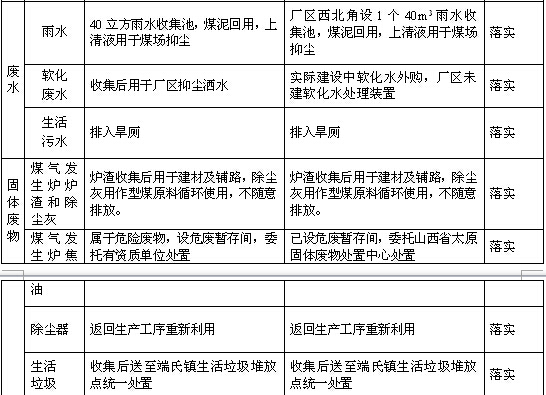 (1)要求盡快完成軟化水處理裝置的建設(shè)。對出廠與端氏煤礦運矸路之間的道路進(jìn)行全部硬化。加強廠區(qū)綠化工作。